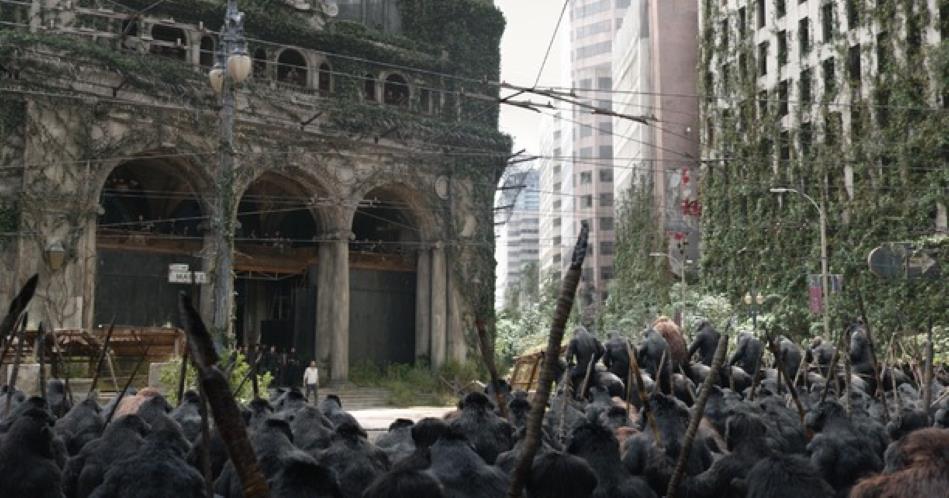 Set roughly ten years after Rise of the Planet of the Apes, the simian flu has grown into a pandemic and exterminated all of the humans not fortunate enough to have a genetic mutation flowing through their veins. A colony of sorts resides in San Francisco, or what’s left of the city with its buildings overrun with ivy and grime. They’re running out of an energy source to power equipment used to attempt communication with any other survivors. There’s only one catch. The dam they need to use is in the forest, as are the apes, not hidden but discreet enough to have not seen a human for two years themselves. And you guessed it…they come to meet.