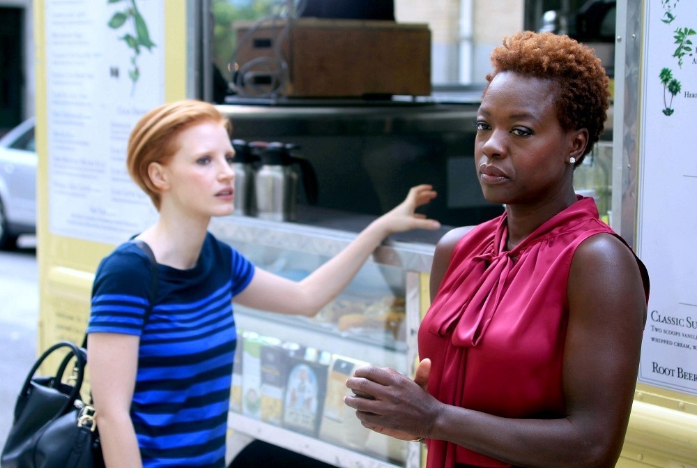 Connor’s story is pretty simple. His father (played by the scene stealing Ciaran Hinds) is a successful and tired restaurateur. Determined to pave his own path, Connor runs a profitless bar and grill with his friend and chef Stuart (Bill Hader) straight into the ground. McAvoy is always good and here he’s excellent in spurts. His half is simply too commonplace for the talented actor to enhance the character. As for Eleanor, she’s a complicated handful. Chastain is one of, if not the best leading lady in films today, with a range that’s second to none. Eleanor’s parents are academics, and after getting pregnant young, drops out of college and haults her dissertation to raise the child. Flash forward and she’s back taking classes, seemingly only to be immersed in the classroom atmosphere once again, and befriends Professor Friedman (Viola Davis, who you connect with in such a short amount of time). As Eleanor disappears, she and Connor are lost from their own story.