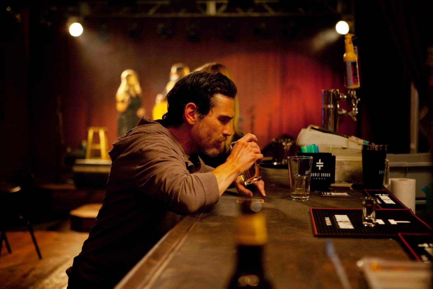 Flash forward two years and Sam has completely cut himself off from his past life. Living on a sailboat, working on a paint crew, riding a bike instead of driving a car so he can spend his days and nights getting gleefully drunk. It’s a heartbreaking deterioration. Surprised by his ex with Josh’s guitar and recordings of his original music, Sam slowly starts to listen and memorize the songs, even mustering up the courage to perform one at a local dive bar’s open mic night. That’s where 21 year-old music lover Quentin (Anton Yelchin) hears him play, and where Sam finds his much needed sense of atonement.