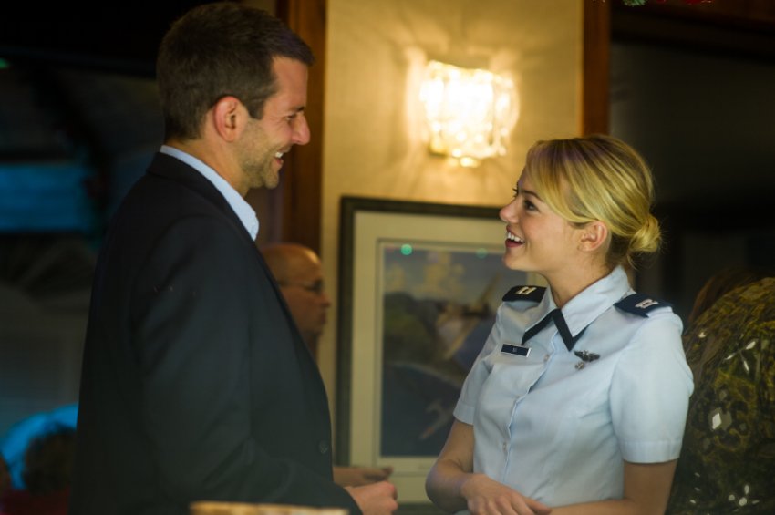For reasons I will never understand, Sony made the first 8 minutes of the movie available on YouTube prior to its release. And that’s about as much of it as you need to watch. We’re introd by Brian Gilchrest (Bradley Cooper). He’s a military contractor, but for all I know, and all we’re told, he could be a Wal-Mart door greeter. Gilchrest walks with a limp after being bombed overseas, negotiates with a billionaire (Bill Murray, who’s hardly in the film) to launch a satellite, and also knows how to decrypt coder hacks better than Alan Turing. He lands back in Hawaii to do some kind of grounds ceremony with the only actual Hawaiian locals shown on the screen. They’re conveniently tucked away into the mountains. Like I said, the plot, or lack thereof, is the equivalent of baby babble.
