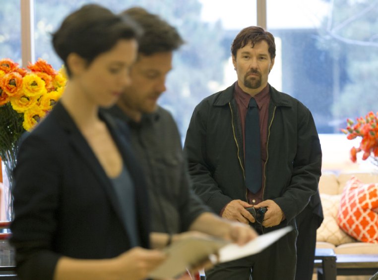 Transplanted from Chicago to California, Simon (Jason Bateman) and Robyn (Rebecca Hall) start like a couple plucked from any other movie. Back near his former hometown, Simon’s a hotshot scaling the ladder in security system sales. Robyn stays home, recovering from the stress of her past job and its effect on her miscarriage. They find a house and get settled in. And while out buying furnishings they bump into Gordo (Joel Edgerton). He’s quiet, odd, socially inept. Simon claims to not recognize his old high school classmate. It’s clear Gordo stands in front of Simon scared, a grown man cowering not physically but emotionally. As for Simon, he shrugs it off, recalling that the kids used to call the guy “weirdo”. Then a gift shows up on their door. And another. And another. It’s a Pandora’s Box of personal revenge and retribution that can’t be closed.