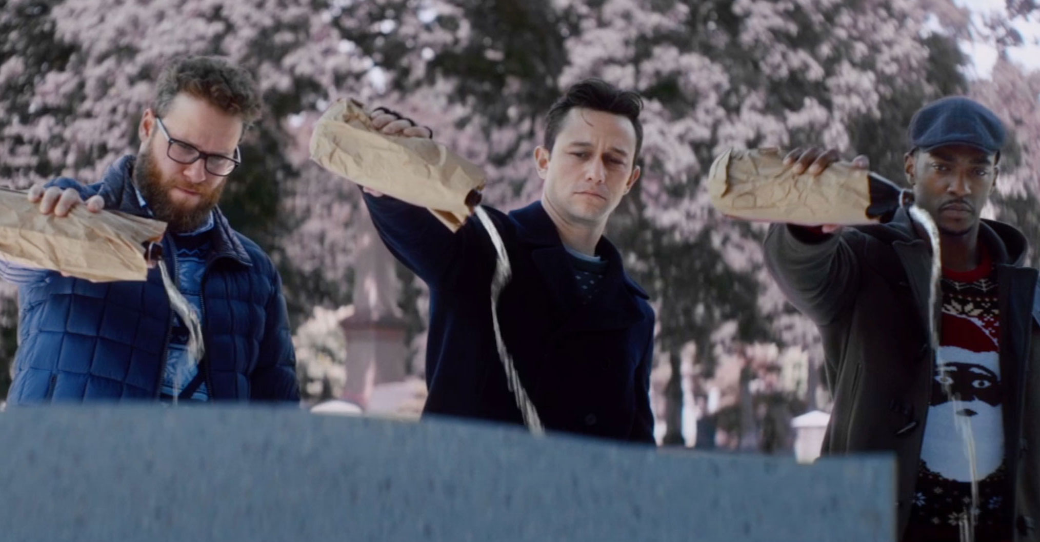 Orphaned during the Holidays as a young man, Ethan (Joseph Gordon-Levitt) plays the requisite mid 30’s male stuck in neutral. He’s an aspiring musician without ever really performing, still pining after his ex Diana (Lizzy Caplan) who he fearfully couldn’t commit to. Ethan’s family is now a surrogate one, made up of his two best friends from high school. Isaac (Seth Rogen, convincing as ever) is a married man to Betsy (Jillian Bell) with a child on the way and Chris (Anthony Mackie) relishes the spotlight as a top football player. They’re all different, and the best part of The Night Before is that it allows these men to be separate while together. Traits don’t bleed over from one to the next. But they always reteam on Christmas Eve for a night out hitting the same spots. The evening is their religious observance, and as is normally the case, things must come to an end and change. After 10 years, it’s time to move on from the tradition, or at least let it organically transform.