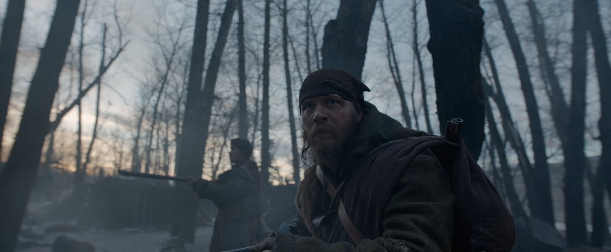 In spite of leaving details of the time and place roughly vague, The Revenant always feels finite. As if this is a real blip of our race’s storied and ever-evolving existence sprawling across the screen. The picture is vast, the details astute, and the presence intrusively inviting. We trek alongside these men. Based on true events, the film tells the savage journey of tracker Hugh Glass (Leonardo DiCaprio). He’s the father of Hawk (Forrest Goodluck), himself a mix of Caucasian and Indian from his deceased mother. Glass’ relationship was elicit, and because of that a tribe attacks the group in search of the Chief’s daughter, assuming that she may be with them. The frontiersman gathering pelts are led by Captain Andrew Henry (Domhnall Gleeson) who earned the position through fortune. Henry trusts Glass’ expertise with the land, but John Fitzgerald (Tom Hardy) thinks otherwise. He wants his pelts, and his money, and none of the trouble that comes from having a young Indian make the trip back to the fort with them.