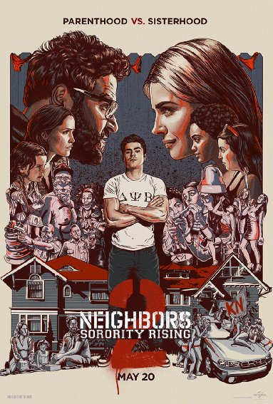 Predictably, there’s good physical comedy from Rogen and Zac Efron. Rose Byrne gets laughs while being way underutilized. However, the real stars are the head honchos of Kappa Nu. Led by the determined Shelby (Chloë Grace Moretz), the embracing Beth (Kiersey Clemons), the experimental Nora (Beanie Feldstein). Neighbors 2 is quite a funny, refreshing film when we’re with them. But then the audience gets suckered back into a laundry list of issues like bad parenting, bromance, self-worth. Too much of this occurred the first time around, making many of the story beats both expected and diminished in value. The biggest hindrance for the majority of mainstream comedies is an inflated length. Too long, too much ad-libbing, too much going on. Nicholas Stoller’s follow-up has great ideas, but with such a crowded cast, none of them really resonate. Neighbors 2 was either edited down to nothing or written without a single setup. Either way, this ain’t no uprising.