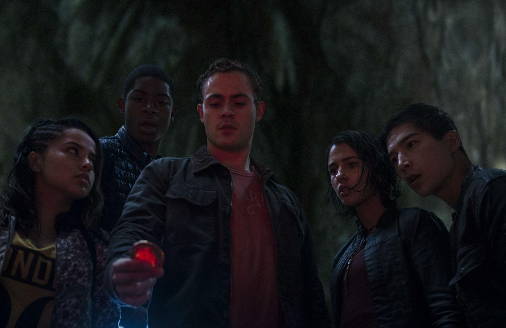 Jason (Dacre Montgomery) is the fallen football star whose school prank has shattered his knee and landed him in detention. There he sticks up for Billy (RJ Cyler), a brilliant mind living on the spectrum who lost his Dad and loves country music. Popular cheerleader Kimberly (Naomi Scott) is there too, serving hard after school time for her cyberbullying. Billy drags Jason to the mine. Jason stumbles upon Kimberly; she goes there to swim and clear her head. They run into the reckless Zack (Ludi Lin), a rebel with cause by way of his sick mother. Trini (Becky G.) treks the hills too. She feels invisible and shies away from communicating. Getting to know these characters takes too much time and jumbles the tone. Perhaps that’s why it works. Like a teenager, you can’t understand the thinking behind the actions, but empathize with the wrestling match of emotions in the respective rings.
