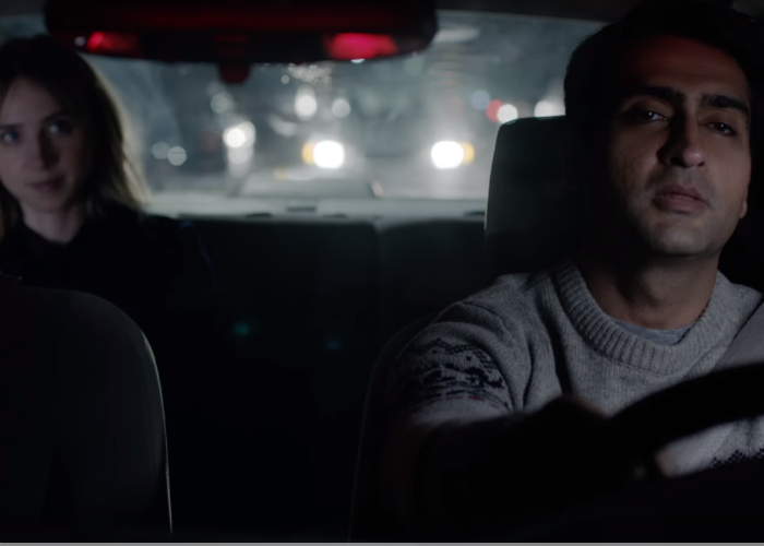 Kumail Nanjiani stars as himself, Kumail, a Pakistani by heritage and a Chicagoan by location. Most nights he performs stand-up in a middling venue with his friends (a solid trio of Aidy Bryant, Bo Burnham, and Kurt Braunohler as roommate Chris, oft the brunt of the jokes). He woos women by translating their names into Urdu on bar naps, taking them to bed on the air mattress in his dingy apartment. Days are spent driving for Uber. Some evenings are endured at Mom and Dad’s suburban home, always with the attempt to be set up with a nice Pakistani woman for a nice arranged marriage. Kumail shows no interest. He doesn’t pray to or worship Allah. His baby face has no beard. But one night he gets heckled by Emily (Zoe Kazan), a white woman, they eventually talk, and we discover their strange off-brand affection for one another just as they do. We fall for them as they clumsily fall for each other.