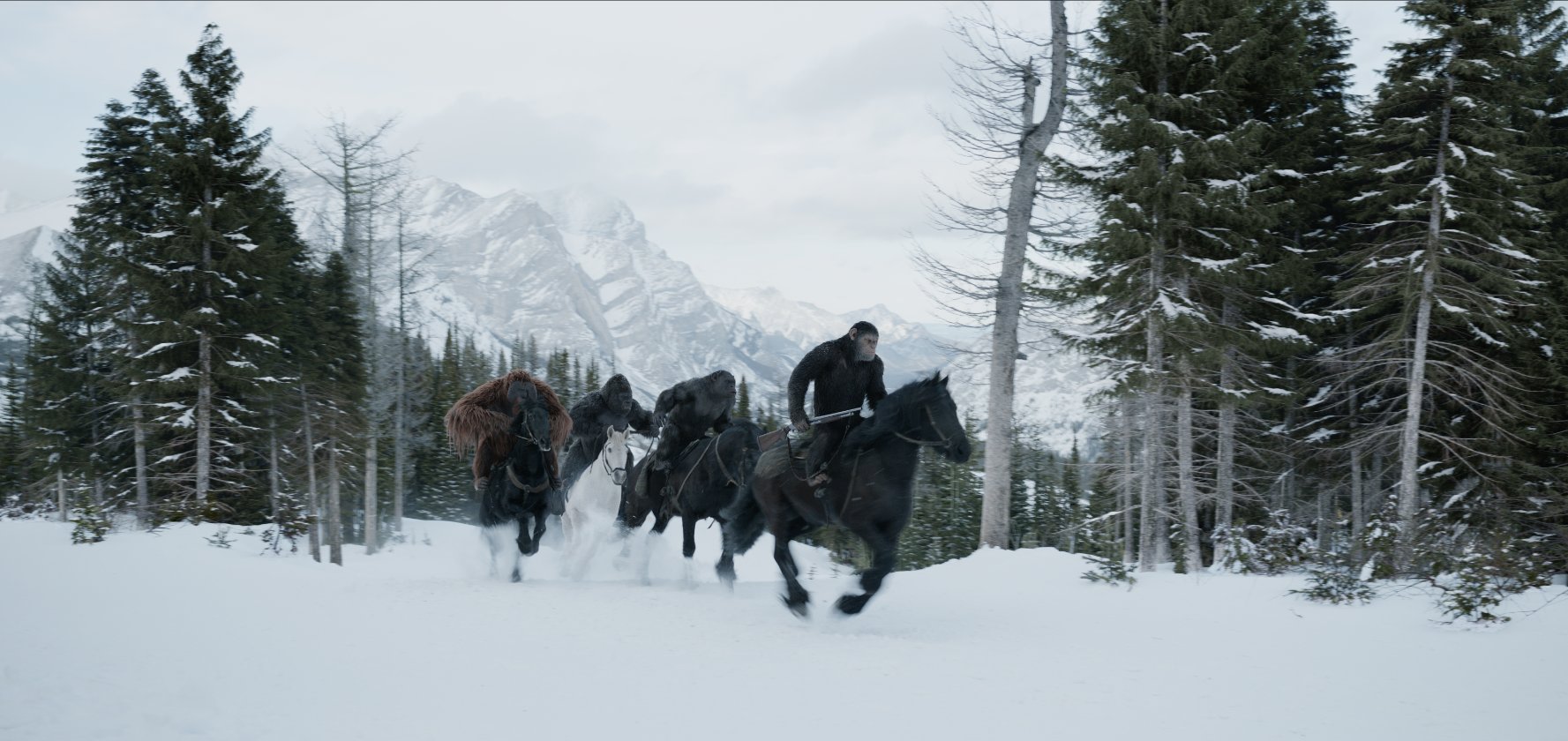 Following personal tragedy at the hands of the Colonel, Caesar sends his colony to search for a new home while he sets off for revenge. It’s important to note that he’s joined by the orangutan Maurice (Karin Konoval), Rocket (Terry Notary) the chimp, and a gorilla named Luca (Michael Adamthwaite). In a move that should be a teaching point for the Homo sapiens sitting in their cozy seats with concession items in hand, the four different species of ape come together to support their greater collective purpose. If only we too realized that prosperity is such a simple joint endeavor. I think this is what fascinated me most about the picture. In almost all of its action, War for the Planet of the Apes combines guerrilla warfare and prison break sequences into an absolute adrenaline rush. But in the calm, in the moments where it’s irrefutably the most sophisticated silent film ever made, the story’s voice is even louder and more tacit.