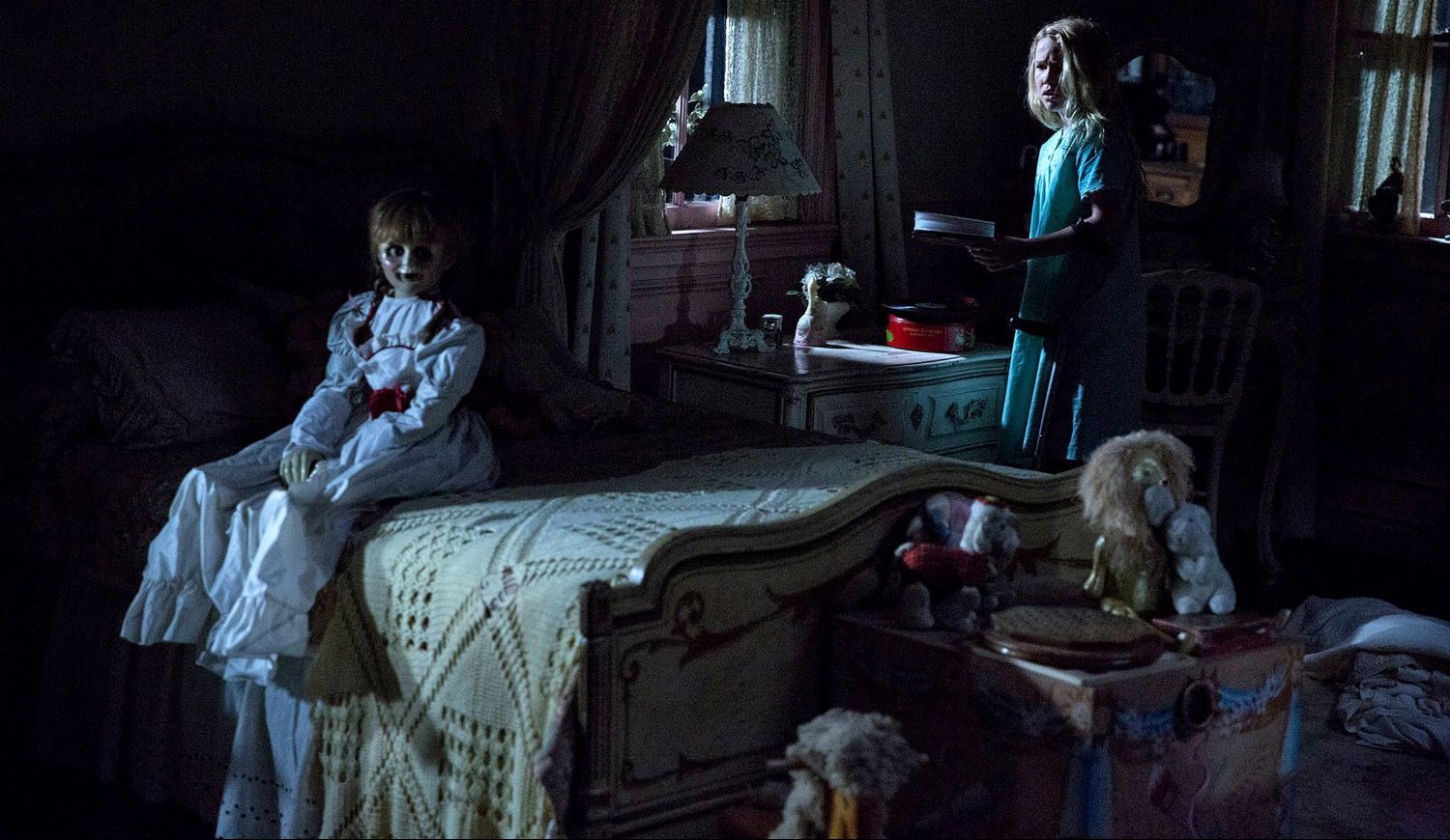 The setup doesn’t make a doggone lick of sense, which in the horror genre really is fine because, as is normally the case, it establishes the unbelievable nature of everything yet to come. How else are we to supposed to believe a demon inhabits a doll unless the opening act is just as implausible? And so we travel with Sister Charlotte (Stephanie Sigman) and the girls of their closed down orphanage to a new home, somewhere I assume to have a Bible Belt zip code given the film’s blatant religious overtones. There they are tepidly greeted by Samuel Mullins (Anthony LaPaglia) and his mostly off-screen and bedridden wife Esther (Miranda Otto). Samuel used to be a doll maker – a successful one, as the massive house would imply – and he still grieves the loss of his young daughter 12 years prior. His main message to the girls is clear: an upstairs bedroom door is locked for a reason, and it is to stay locked. Annabelle: Creation acts as if such rules aren’t just meant to be broken, but to be ignored altogether.