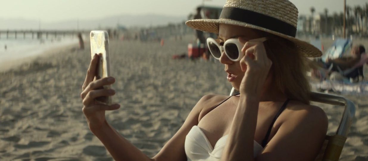 A quick glance at the emotional and confrontational close-up of Ingrid Thornburn (Aubrey Plaza) above and you’d think she’s simply crying. Look closer. Mucky mascara, both eyes cast down, a phone’s luminescence reflecting off both pupils. We hear the taps of her fingers on the screen, images of a marriage flooding through an Instagram page and Ingrid “liking” each one thoughtlessly. The scene cuts without giving more detail until Ingrid arrives at the wedding in real-time, pepper sprays the bride, and is tackled from behind. Turns out Ingrid became obsessed with the woman’s so-called picture-perfect life (a phrase that I think entirely defines this film). Not being invited to the ceremony – even though she’s a total stranger – felt like an intentional and knowing stab in the chest. It’s pretty clear that Ingrid has issues. Maybe going West will help her solve them. Or maybe not.