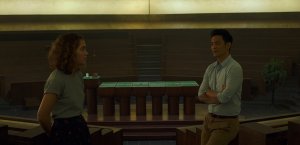 Where the film does mightily impress, and where Kogonada’s unabashed affinity for the late masterful Japanese filmmaker Yasujirō Ozu comes through, is in its static lenses. In the pieced together editing of long shots from hallways, walkways, alleyways, bridges, streets. They’re all methods of transportation for the layperson, mirroring most of Ozu’s filmography about the travails of the poor, especially his prestigious 40’s work with the “Noriko trilogy.” I’ve just recently embarked on a personal study of Ozu’s work. His films are patient and observant pictures that are relatable through their reflections on the parent/child dynamic, by standing back and observing/framing the various perspectives through which we can see the surrounding world. Kogonada’s debut feature definitely does not soar to the great walking and talking heights of Richard Linklater’s collaborative The Before Trilogy – which, I can only assume, is the result of such a stick-to-script production rather than a collectively creative endeavor – but it finds beauty and philosophy in landscapes, and manages to engage us there in deep thought.