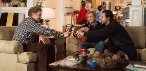 Of course, the grand-daddies are coming to pay a visit. Don (John Lithgow) kisses his adult son on the lips, they’re giddy, finally reuniting since Thanksgiving. Shouldn’t it worry Brad that Mom isn’t with Dad? No, because he’s an oblivious and trite Clark Griswold. Meanwhile, Kurt (Mel Gibson) phones his boy Dusty after five years and decides to hop on the holiday train. Kurt scoffs behind his curtain of strained masculinity, rousing the troops into battle mode to force drama into the film’s big break-up before the finale. Daddy’s Home 2 has an innocuous and boringly safe beginning, a middle rife with so much physical humor that it makes audiences laugh the same way a reflex hammer makes your leg kick, and an ending that quite literally puts these intensely unlikable people up on a stage in a movie theater lobby as they sing out and bask in their praise. Had this film been real, and had I been witnessing this monstrosity in person, I’d have either gone to sit in the bathroom or walked through the doors into the blizzard outside. Daddy’s Home 2 is a film that positions its audience as co-conspirator bullies, and it tries to make you laugh at people who are weak or kind or those who show emotion. The film celebrates its devilishly Scrooge outlook. Outside of softcore porno parodies and Santa filled slasher pics, I have a hard time imagining a film with a setting so dependent on Christmas cheer that’s also this debased, foolish, and hedonistic.