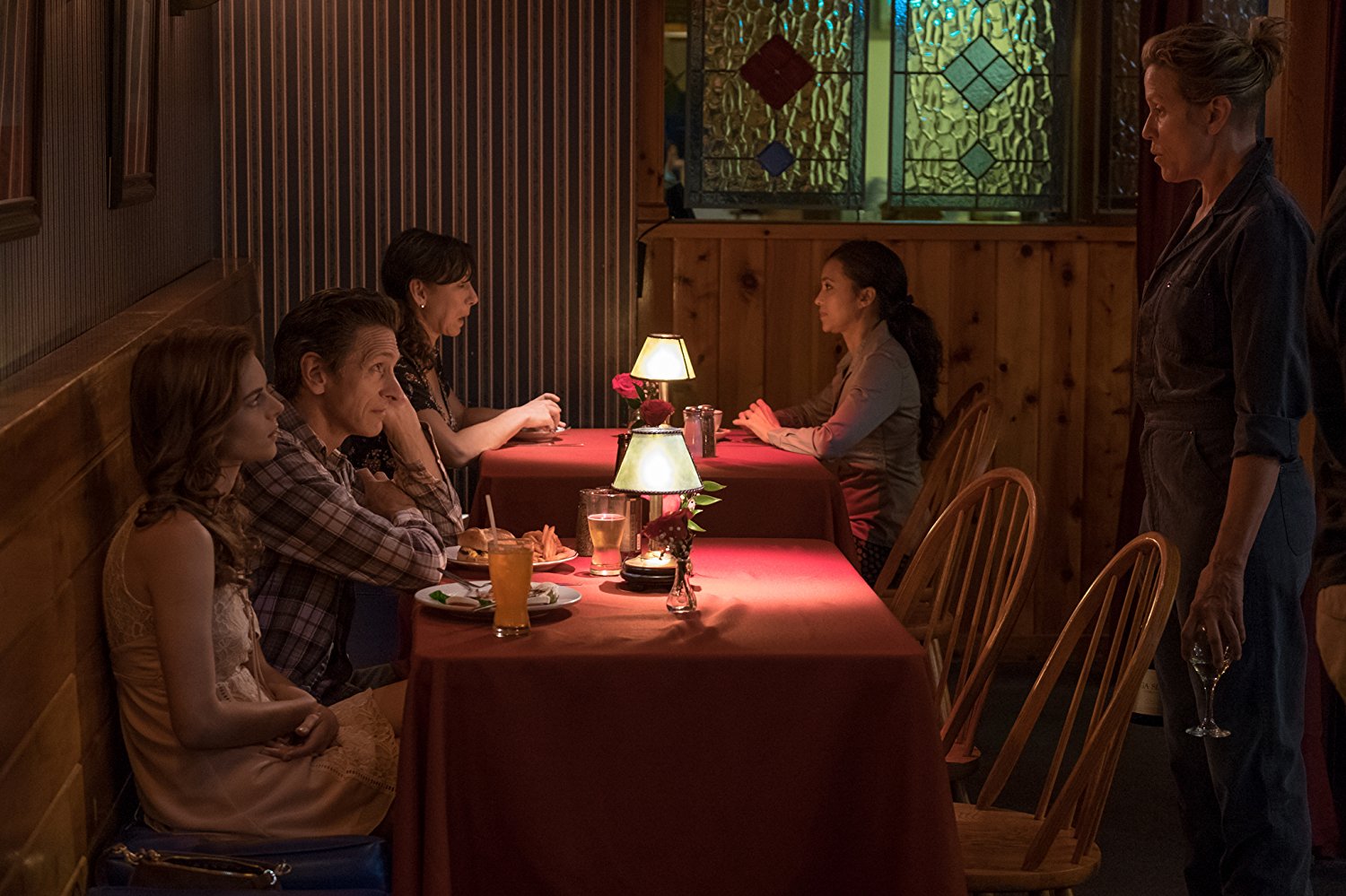 Mildred Hayes (Frances McDormand) takes the forgotten, unbeaten back road to her hillside home. Her hair’s let down and her gaze is steely all before lightning strikes. Mildred passes the titular three wind-battered billboards on the daily commute home, but on this day she’s struck with an idea: let’s rekindle the fire and stir the pot, shall we? It’s a brief but effective sequence showing the many levels of McDormand’s talent – we can literally see the wheels spinning in her head (and she adds a hard nail bite for good measure) – that leads to an even greater dramatic beat filtered through the welcomed exhale that comes from any decent comedy. What happened to Mildred and her family isn’t spilled out in the trailers, nor should it be here. Yet as a single mother to Robbie (Lucas Hedges) in a big ranch while her abusive ex Charlie (John Hawkes) runs around with a young woman more than half his age, you could probably guess the type of experience that’d have the weight to tear them this far apart. What’s lost is definitely gone but what’s done does not yet have a silver lining.