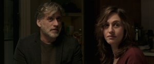 As fraught as it is intense, the opening act dissolves into a perplexing middle. Jonathan Feldman (Yonaton Shiray) and three fellow soldiers watch a security post on a desolate, dimly lit Israeli road. They trudge through mud, live on canned meat, and dwell in a shipping container (it’s literally sinking and the camera angles show the off-kilter nature of this militaristic lifestyle). Most viscerally represented in this quartered off and limping limb of a segment is the gradual onset of anxieties born into the human psyche from wars of attrition. Nothing really happens. Time after time we expect disaster and are almost disappointed by the lack of action given the incredible intensity of the moment. Quite beautifully and altogether achingly, Foxtrot depicts the mundane horrors of modern global warfare. It’s boring only until it’s searing, and the film provides an intimate sketch of what it means to live in a constant, inescapable state of fear, as well as one that’s altogether too quickly succumbs to the fleeting fame of the inevitable next atrocity.
