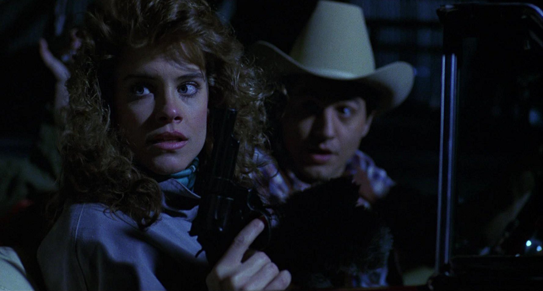 The movie loses some of its edge when the girls meet fellow survivor Hector (Robert Beltran). It was one of Beltran’s first acting gigs, but I have to say that his performance here is one of the worst I’ve ever seen in a film; it’s more frightening than anything else in the movie. There’s also a subplot with scientists that doesn’t work because it’s so damn undeveloped, and the ending is as cheesy as they come. But somehow writer/director Thom Eberhardt used these moments to create a style that’s both smart and dumb, natural yet so totally manmade. Featuring some gorgeously red tinted wide shots, a screeching score so typical of the times, and an irrationally entertaining scene where the sisters raid a mall to Cyndi Lauper’s “Girls Just Want to Have Fun,” Night of the Comet is the kind of late-night movie you’d watch at a drive-in or catch in a dive theater. It has an unmistakable nostalgic vibe with a progressive attitude. And sure, the film is definitely a few bricks short of a full load, but that just allows it to sprint towards the finish line even faster.