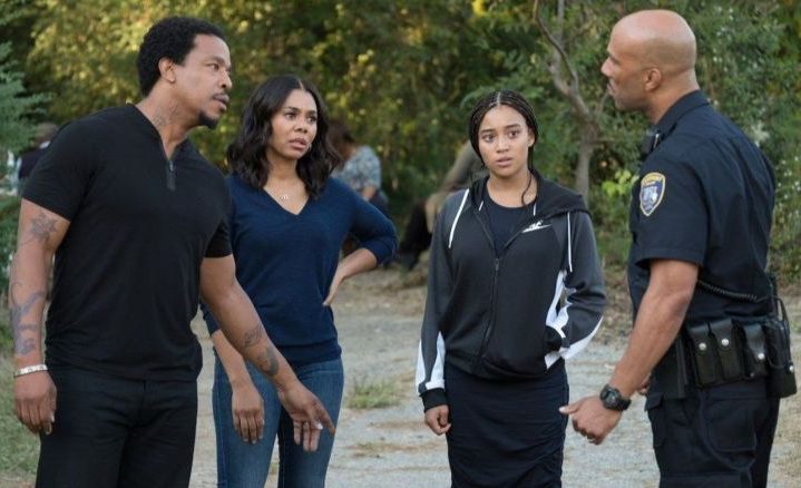 Starr Carter (Amandla Stenberg) is born and raised in Garden Heights, and it is absolutely crucial that this fictitious town is never given a definite location; what’s soon to unfold is not bound by any precise geography because its drama crosses state lines. Garden Heights is such a sham of a name, too. This place, full of pride and crime in equal spades, gives people the space to take root in the community whilst limiting their glass ceiling. That’s why Starr and her brothers Seven (Lamar Johnson) and Sekani (TJ Wright) make the commute to the private school Williamson Prep everyday. They aren’t enrolled there to learn how to pray, says their mother Lisa (Regina Hall). They are there to study, to be safe, and prepare an exit route from the Heights. Even their father Maverick (Russell Horsnby), a former drug dealer who did his time and escaped the trials of the trap, while still refusing to uproot his convenience store or abandon the only home he’s ever known, wants more for his children. The entire film is about conflict, both internal and external.