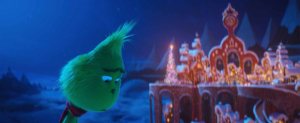 We all know the story and The Grinch mostly sticks to the script. The Grinch (voiced by an uninspired Benedict Cumberbatch) spends his days holed up in a mountain like a troglodyte, passing the time with his trusty sidekick pooch Max. They don’t really do much of anything, spending their awake time counting the minutes until they’re back to bed. Despite all of the hi-jinks that the film depicts early on, it’s clear that the Grinch is lonely and depressed. Perhaps my favorite bit in the movie finds him at an organ playing Eric Carmen’s “All By Myself,” wallowing in his own misery as Max tries to cheer up this green grump with some lively drums. All the while Whoville’s busy prepping their most extravagant Christmas yet because the Mayor (Angela Lansbury) wants this year to be 3x bigger than normal. Maybe Grinch’s heart will grow at the same rate.