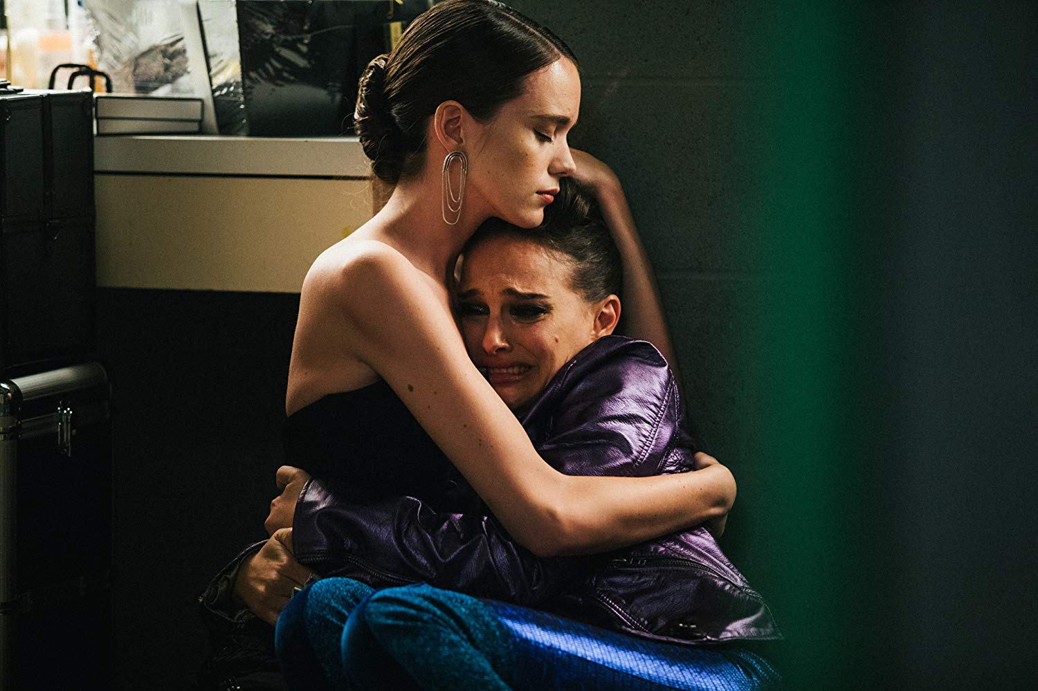 A crucial scene shows Celeste conversing with her manager (Jude Law), a man who looks dead by day and alive by night, voicing her concerns about producing empty pop music. She obliges and years later we meet the hostile byproduct of her decision. Now a superstar on the world stage, Celeste’s (Natalie Portman) appearance is that of a space opera enchantress, small in stature yet incredibly tenacious, a bewitching and far different adult than we might have expected. Celeste has a teen daughter (again played by Cassidy in a brilliant decision, symbolizing literal rebirth) who she can’t really parent, and she’s in a tailspin of drugs and alcohol abuse. Vox Lux punches us in the gut to start before letting its hands slither upwards, wringing around our necks. Celeste wears a choker in that region to cover an old scar, to illustrate where she is internally, and to separate the head from the heart. Even someone who sings for a living can feel silenced.