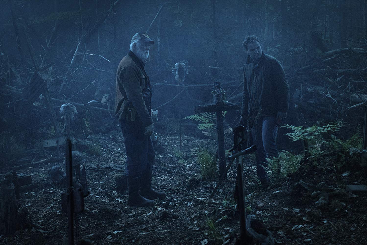 Dr. Louis Creed (Jason Clarke) and his four person family relocate from Boston to Maine, the source material author’s favorite state to haunt. He’s happily married to Rachel (Amy Seimetz) and together they have their Ellie (Jeté Laurence) and their Gage (played by both Lucas and Hugo Lavoie). The Creed’s widowed neighbor Jud (John Lithgow) joins them for dinner on occasion, becoming quite fond of the family feeling he’s long been missing, and his good intentions open the rabbit hole which they all abruptly collapse into. Jud shows Louis the Pet Sematary, takes him to the place beyond the graveyard pitch where strange things happen and reanimation is a reality, and it’s the match soon to light the entire story aflame.