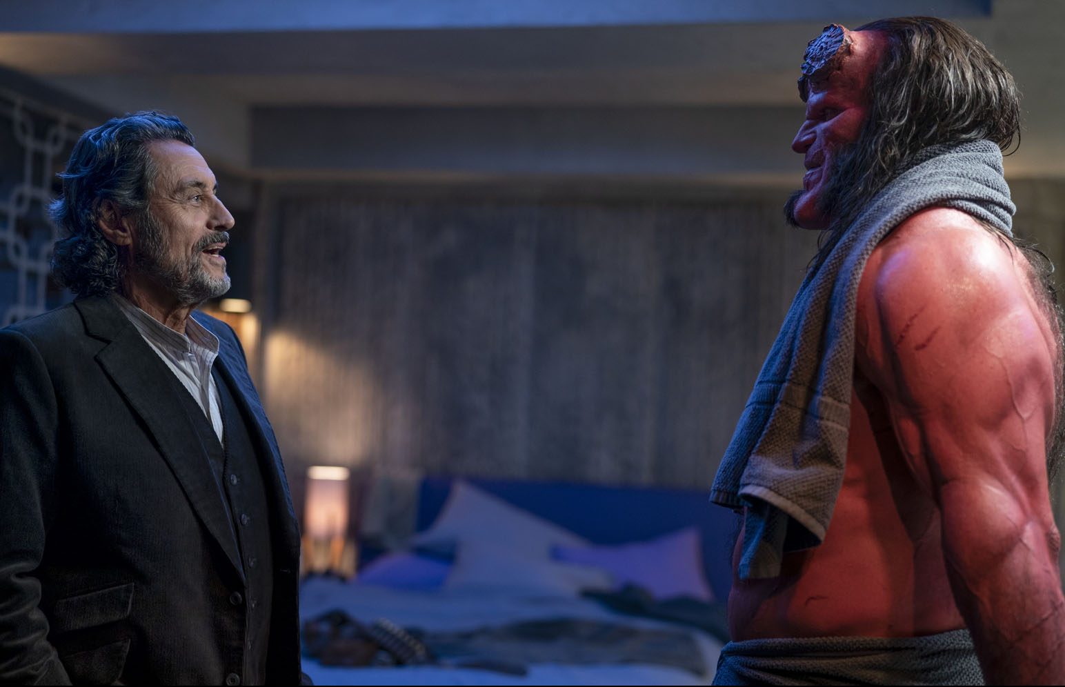 There’s an evil Blood Queen named Vivian Nimue (Milla Jovovich) who’s dismembered and cast away during the Dark Ages by King Arthur. Then in the present we come across Hellboy (David Harbour), a half man and half demon with a strong right hand and horns cut down to the stump. Think of him as an angsty teenage version of Clifford the Big Red Dog with opposable thumbs, a filthy vocabulary, and a body covered in as many scars as his troubled, confused inner psyche. Trevor (Ian McShane), Hellboy’s adoptive Dad, turns his deadly son into a killing juggernaut, vanquishing all evils away from the human world. I honestly don’t recall much more in regards to their troubled relationship.