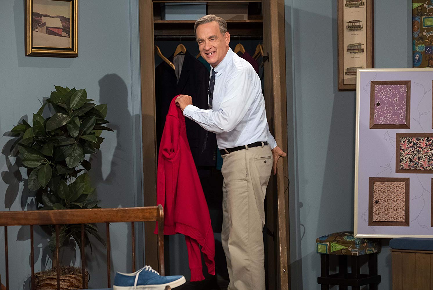 The movie immediately recreates and embraces the whimsical, almost alien nature of television host Fred Rogers (Tom Hanks, playing a man I’m not sure anyone else could have portrayed). He jaunts through the door, trades a suit coat and dress shoes for a red sweater and sneakers, all while smiling and singing. Mister Rogers speaks slowly, in a cadence practically sounding out each syllable, giving the many kids at home time to understand his words; he always talked to the children, not down at them. Is it all an act, though? Is Fred Rogers playing a character, or is he the same man both on-screen and off? Can this level of genuine kindness escape the pitfalls of fame? These questions – among others – are answered with a bright-eyed look, a hallmark hello, and a soft handshake where Fred places his left palm on top for good measure.