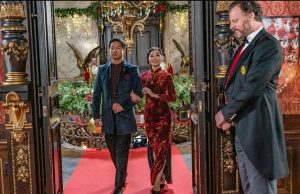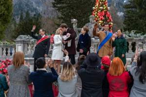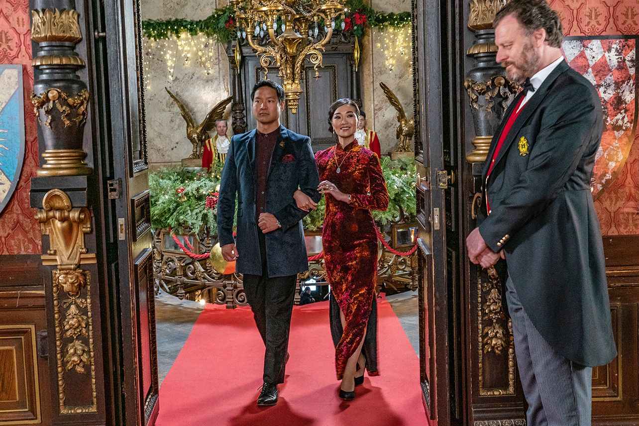 After you press play and before the movie starts to stream, we get a pretty thorough yet succinct recap of what took place in the first two films. The despised suitor to a Prince, followed by the dramatics of a wedding gone awry. This time around, Queen Amber (Rose McIver) and King Richard (Ben Lamb) have their hands full anticipating the holidays and the birth of their first child. There’s also the matter of renewing a longstanding truce with the leaders of Aldovia’s ally country Penglia. They welcome Penglia’s more traditional royality King Tai (Kevin Shen) and Queen Ming (Momo Yeung) for the centennial signing of the document, except it’s somehow gone missing at the last second.