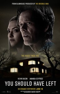 As is the case for most middling movies, there’s as much to like about You Should Have Left as there is to wag your finger at. It’s too familiar yet never lacks for ambitious tangents, even when they are inconclusive and half-witted. The story is on the nose but packs intense psychological punches. The scares work well and are too infrequent. Ultimately though, it’s too flawed for its own well being, making You Should Have Left another example of a movie whose broad reach greatly exceeds its intentionally small grip and exceedingly loose grasp on reality.