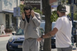 Quite brilliantly, Borat 2 addresses the biggest concern in mere minutes, which is that Borat was a cultural phenomenon whose likeness has not faded much in the past 16 years. He’s such a familiar, mustachioed face that he has to put a bag over his head, run from crowds, and even comes across a parody costume of his own likeness in a Halloween store showing the lasting cultural impact he’s previously made. Not many characters have become touchstones, and what’s refreshing is that this version of Borat grows into a meteorite, touching down and leaving a literal mark instead of flashing across the sky like a comet with a few memorable goofs and shocking lines. The first film was an extraordinarily successful and exploitative guerilla comedy whereas this new addition is fueled by the power of paternal love. It cuts so much deeper. It hits the head and the heart.