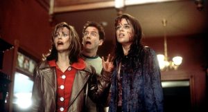 Casey’s demise comes on the cusp of the one year anniversary involving Sidney’s (Neve Campbell) mother’s gruesome murder. She’s scarred by history and scared by the similar recent killing of her classmate. Sidney is a strong high schooler though, sometimes indulging her ultra horny boyfriend Billy (Skeet Ulrich) but initially refusing to let him go all the way, playing it safe at times and bending to social pressure at others. She is the film’s leading lady – the real final girl and a scream queen with agency – and the character blends the mythos of Halloween with the structure of classic 80’s horror pictures, all told through the lens of story so utterly 90’s. Scream is a studied movie that’s incredibly enamored by and with other movies, and Kevin Williamson’s sharp script showcases that passion scene after scene. It’s easy to break rules out of ignorance. Scream breaks them out of diligent intelligence.