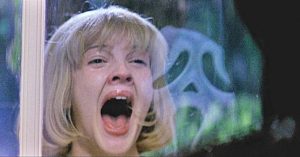 Ostensibly, Scream is a piece of transgressive art, a form popular in the 90’s and one that’s shown here with equal parts overtness and subtlety. Brilliantly, the picture establishes this ethos in the unforgettable opening sequence, leaning into tropes while gently twisting them every step of the way. It’s fun to watch Casey (Drew Barrymore, the film’s biggest name who wanted one of the smallest parts), play along with a supposed crank caller, make popcorn on the stove, turn on the TV while home alone. In most films she’d be the final girl, but Scream literally kills that idea within the first 5 minutes, setting up a movie that’s never afraid to disguise how inspired it is by other movies. It’s a reinvention and complete distillation at the same time. I believe it to be one of horror’s finest moments of the modern era. The cutting style is staggering and stabbing.
