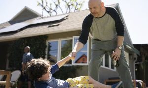 The characters in Old Dads are just that; none feel like real people for a second, and I’d challenge anyone to the tall task of recalling their names a week later…I’m not sure it’s possible. Nevertheless, the flatfooted and altogether listless endeavor is headed by Jack Kelly (Bill Burr), a grumpy and borderline basic man with a white hot temper, who was raised hard and is a bit rough around the edges. Jack encourages a child to rub some dirt on a scrape after a fall; younger parents in the neighborhood suggest Neosporin and a Band-Aid. Old Dads shows the changing of the tide, and Jack turns to his best friends and coworkers for reassurance when the waves starts washing ashore. Connor (Bobby Cannavale) has no say against his helicopter wife Jackie (Cara Brody), and Mike (Bokeem Woodbine) fears a future with his much younger yet completely devoted partner Britney (Reign Edwards). Jack is in the middle, and although he’s the protagonist, he’s the least interesting of the bunch, especially compared to his endearing soulmate Leah (Katie Aselton).