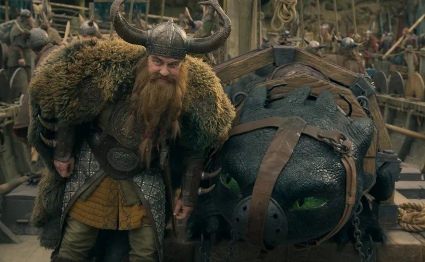 We know that Hiccup (Mason Thames) is a scrawny Viking boy who struggles surviving the goliath shadow of his father Stoic the Vast (Gerard Butler), chieftain of the Isle of Berk. We know the village is constantly ransacked by thieving dragons – the archnemeses of the villagers – for the cattle and livestock they call their livelihood. We know Hiccup befriends a Night Fury dragon named Toothless, that he builds an appendage for the animal he injured, and that cheats his way throughout a Viking 101 preparatory dragon fighting class with the help of his newly winged buddy. You might even remember Astrid’s (Nico Parker) suspicion of Hiccup’s fraudulent success. The two young actors feel authentic in the roles, but there’s too little being contributed that we haven’t already seen.