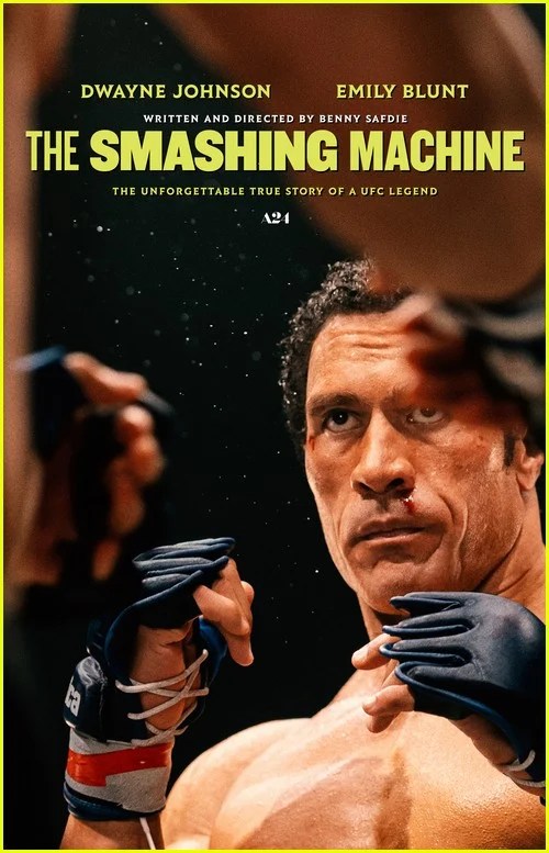From the onset, The Smashing Machine immediately looks the part, like something ripped off a public access station from a neighbor’s basement box TV. Everything about the production design here is Oscar worthy, helping transport us into the late 90’s and early 2000’s. Mark Kerr (Dwayne Johnson) makes his debut in the new Ultimate Fighting Championship, a sport just in its infancy as far as popularity goes. He’s a bruiser, breaking his opponents and then immediately checking in on their well-being. Kerr is what they call a gentle giant. Outside the octagon he’s just as soft, squaring off with his own demons and testing his mental fortitude as he battles substance abuse. The toxic, rollercoaster relationship his has with Dawn (Emily Blunt) isn’t helping.